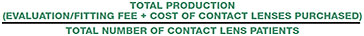 1. Production per contact lens patient: total production (evaluation or fitting fee + cost of contact lenses purchased)/total number of contact lens patients.