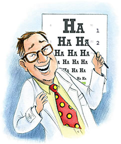 Of course, you must be careful of how you use humor and with whom. You obviously don’t say to a patient, “Ha, ha, ha. You got yourself a big old case of glaucoma there.” But I don’t think people like pompous doctors. I was talking one day to a security guard at a hospital. After a while, he said, “Ain’t you a doctor?” I told him yes, I was an optometrist.