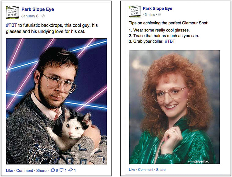 In these examples, Park Slope Eye uses the popular “Throwback Thursday” (#TBT) hashtag to engage with its audience.