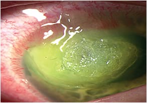 Infectious corneal ulcers occur from water exposure to contact lenses, eye trauma (poking one’s eye with a twig, for example), overuse of topical steroids and the biggest culprit — non-compliance to one’s contact lens wear and care regimen.