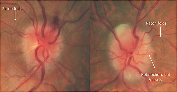 • Folds (Paton’s folds: concentric, usually temporal, retinal folds that surround the disc or choroidal folds)