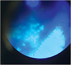 Examination revealed her cornea had diffuse focal epithelial lesions and keratitis. These focal corneal lesions became more prominent upon fluorescein staining. In addition, her cornea appeared to have early stage dendritic formation with subsequent keratitis of the epithelium and anterior stroma. Given these findings and her post-cataract surgery steroid drop regimen, I suspected this patient had topical steroid-induced herpes simplex virus (HSV) keratitis.