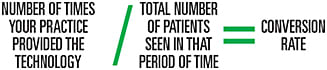To measure the capture rate: Number of times your practice provided the technology/number of patients = Conversion rate. For example, 20 OCTs provided/50 total patients seen per week = 40% OCT conversion rate.