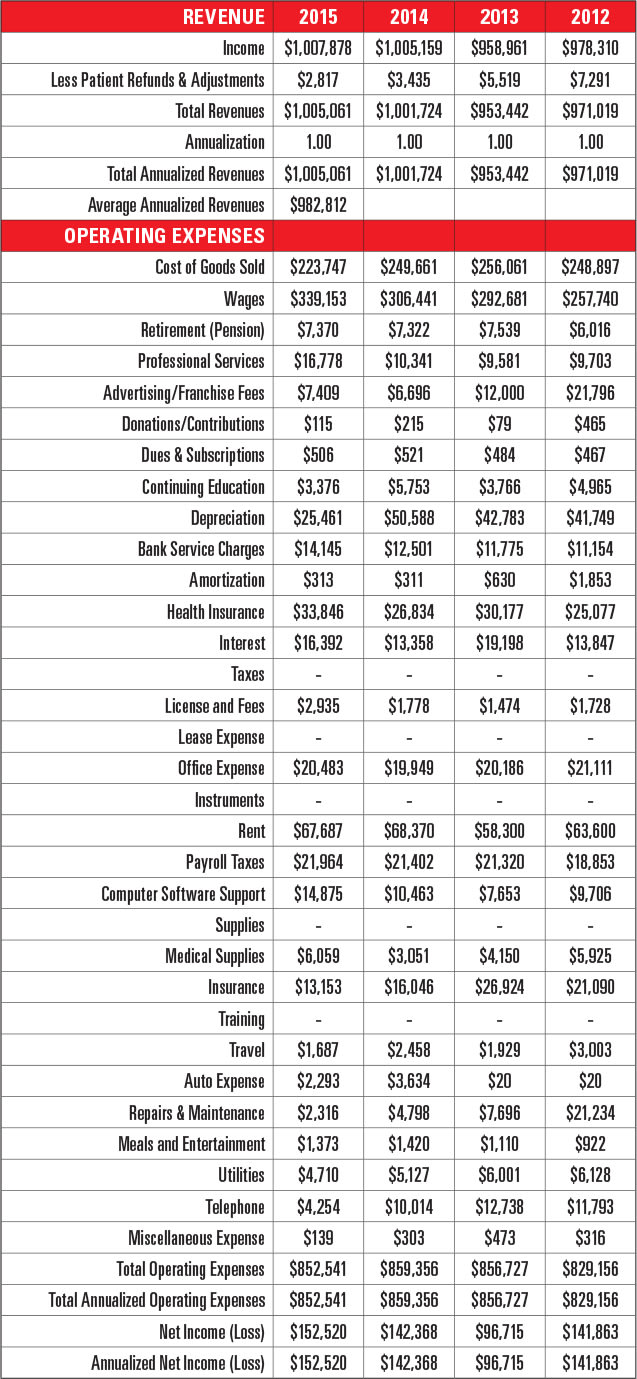 | Wages devoted to optical, plus owner’s compensation | $307,066 | $316,800.29 | $247,119.17 | $271,984.78 |