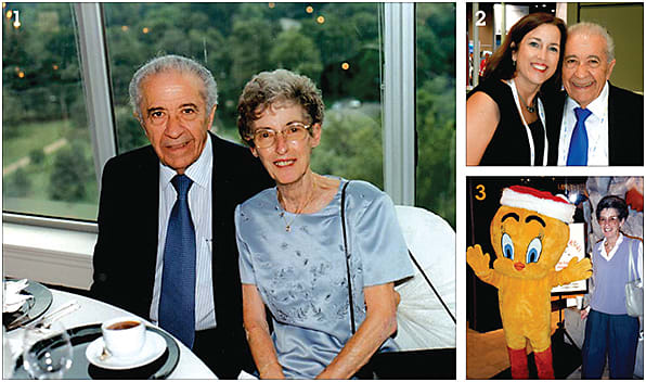 1: “Uncle Frank” with Dorris. 2: Alcon’s Dana Sager and “Uncle Frank” at the National Optometry Hall of Fame ceremony.