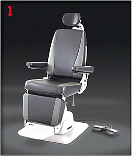 Premiere Collection 7000 and 710 exam and procedure chairs, from Reliance Medical Products and Haag-Streit, have been updated for patient comfort and aesthetics. New color options include lucent, woodland, harmony and industrial. ■