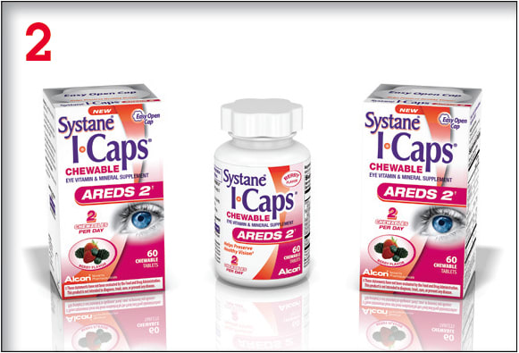 SYSTANE ICAPS AREDS2 Eye Vitamin, from Alcon, is a chewable vitamin for patients with intermediate to advanced AMD. Compared with the original AREDS formulation, the vitamin features lower zinc levels and no beta-carotene. ■
