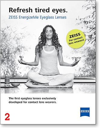 ZEISS EnergizeMe is an ophthalmic lens designed for vision needs of contact lens wearers. The lens features Digital Inside Technology and DuraVision BlueProtect coating. The lens is available in single vision, digital and progressive. ■