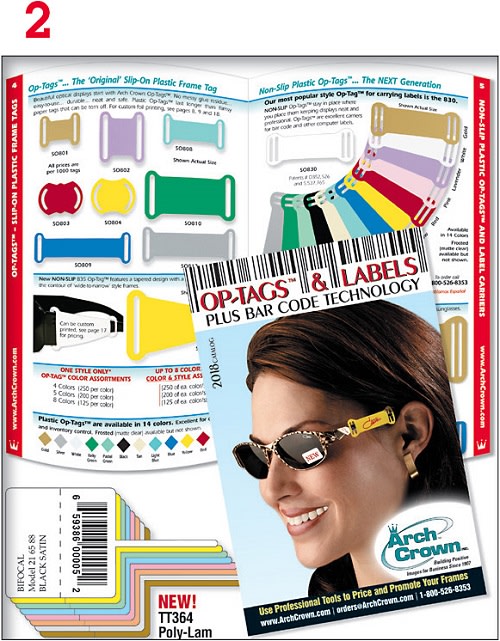 Op-Tags, from Arch Crown Inc., are barbell-style tags with adhesive-free loops, available in multiple colors, and sturdy text and bar code images. ■