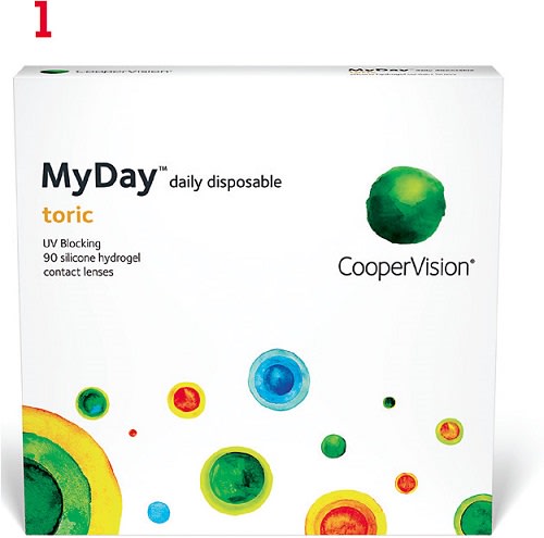 MyDay toric, from CooperVision, is a daily disposable silicone hydrogel lens that features the Optomized Toric Lens Geometry found in the Biofinity toric. It is available in sphere powers from plano to -6.00D (0.25D steps), and -6.00 to -10.00D (0.50D steps), with cylinder options of -0.75D, -1.25D, and -1.75D in axes of 10°, 20°, 70°, 80°, 90°, 100°, 110°, 160°, 170°, and 180° and -2.25 in axes of 10°, 20°, 90°, 160°, 170°, and 180°. The lens has a base curve of 8.6mm and a 14.5 mm diameter. ■