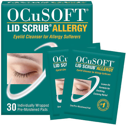 OcuSoft’s Lid Scrub Allergy Eyelid Cleanser removes oil, debris, pollen and other contaminants from the eyelids, while employing Green Tea Extract, Tea Tree Oil and PSG-2 (Phytosphingosine) to decrease redness, inflammation and allergy-related itching.