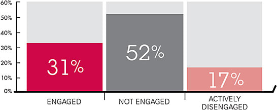 ENGAGED EMPLOYEES IN THE U.S. AND CANADA, ACCORDING TO GALLUP’S “STATE OF THE GLOBAL WORKPLACE”