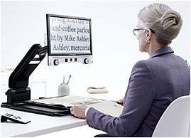 Vario Digital FHD Advanced foldable desktop video magnifier, from Eschenbach Optik, features a 15.6-inch full HD monitor with an optical digital zoom that magnifies 1.3x to 45x. Included is an external remote, an HDMI-in port (allowing for distance viewing through an optional external camera), line scrolling on live images and a mirror mode.