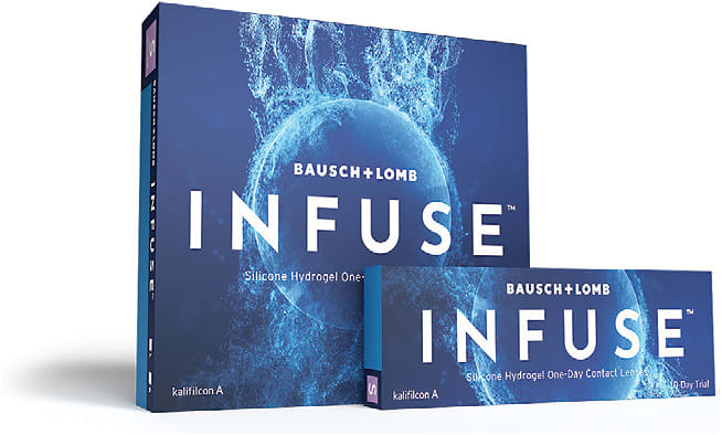 Bausch + Lomb’s Infuse lens is a daily disposable silicone hydrogel contact lens manufactured with a proprietary combination of osmoprotectants, electrolytes and moisturizers released during lens wear to promote ocular surface homeostasis. This feature, called ProBalance Technology, addresses the challenge of contact lenses, which by their nature, alter the balance of ocular surface homeostasis, which can lead to ocular dryness and discomfort.