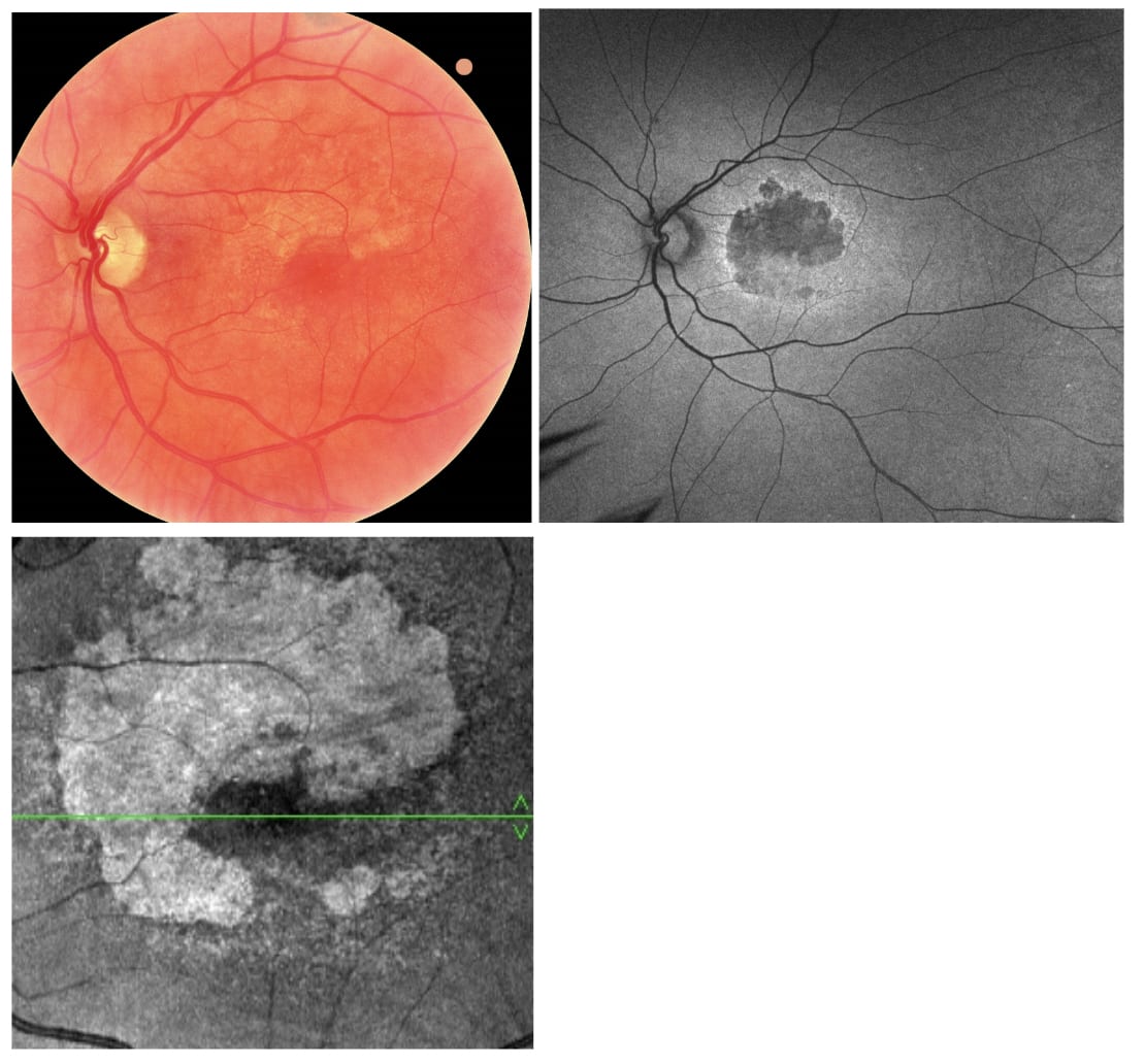 In addition to OCT, imaging modalities such as fundus autofluorescence (FAF), en face imaging, and color fundus photography play an important role in tracking GA progression (see Figure 5). These tools help correlate findings across imaging methods, provide a visual reference for monitoring lesion size over time, and enhance patient education by illustrating disease progression in a way that is easier for patients to understand, compared to OCT.