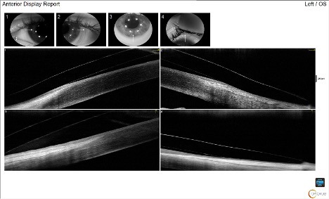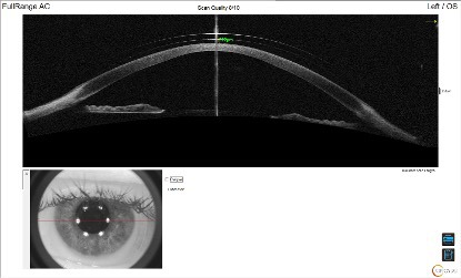 Anterior segment OCT can be an invaluable tool to assist with scleral lens fitting and improve lens accuracy and alignment. This straightforward scleral lens fitting case demonstrates the ease of scleral lens fitting with OCT assistance. Several Optovue Solix scan protocols can be useful, including Corneal Mapping (full corneal epithelial, stromal, and pachymetry mapping), to achieve corneal topography and select the initial diagnostic lens. FullRange AC, which can capture the entire anterior chamber in a single scan, can help image the central and limbal zones, and the Cornea Angle scan, which quantifies the openness of the iridocorneal angle, is useful for a more magnified limbal zone image as well as edge alignment.