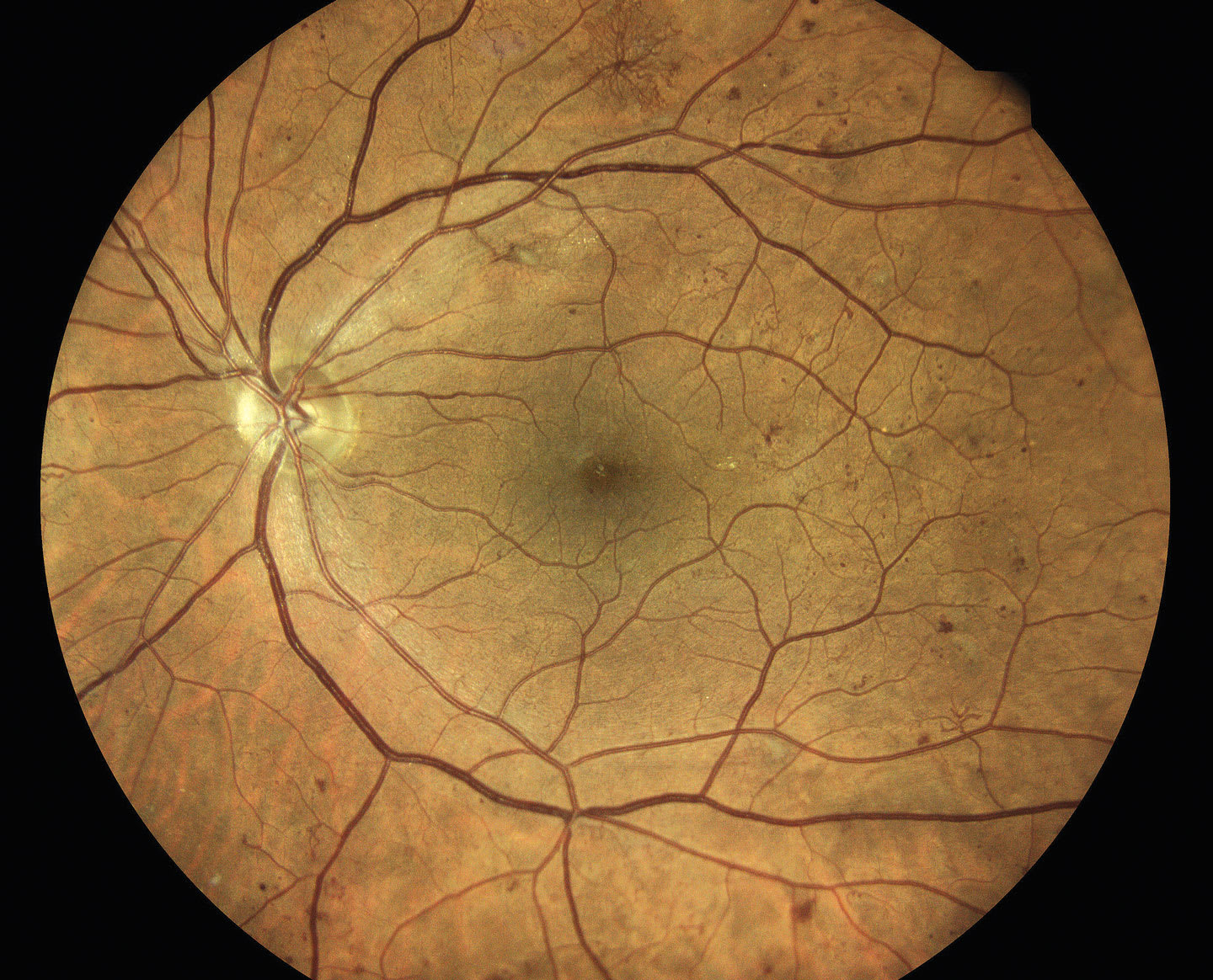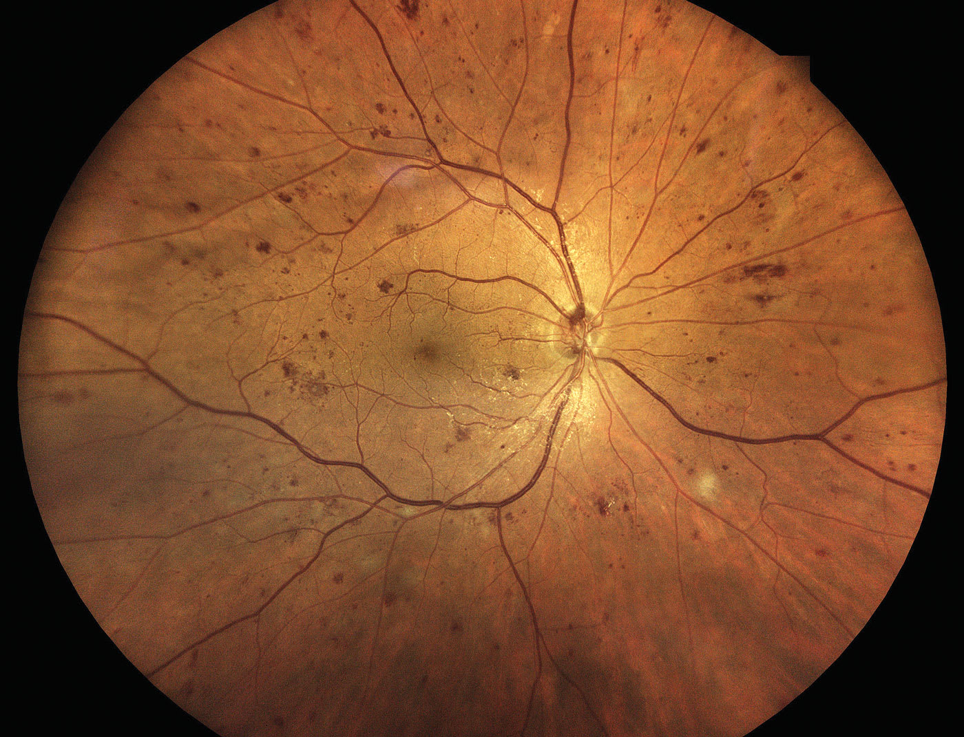 This is characterized by the presence of at least 1 microaneurysm or retinal hemorrhage (Figure 1). Microaneurysms represent outpouching of the retinal capillary walls due to weakening from pericyte loss. Hemorrhages result when the capillary wall ruptures within the inner nuclear or outer plexiform layer of the retina, therefore forming a characteristic dot/blot appearance.3 Fluorescein angiography (FA) is not indicated at this stage and color photos, while not necessary, are often useful for patient education regarding the importance of complying with their follow-up appointment and monitoring disease progression.